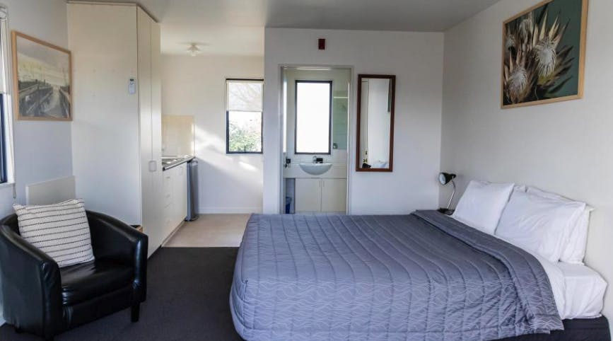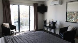 Super King Bed with shower ensuite. Two cooking hobs, microwave, toaster etc. Sky TV with 50+ channels, free WiFi, heatpump / air conditioning in room & free parking.